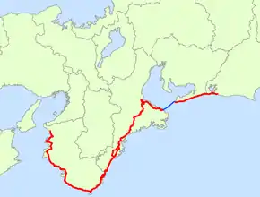National Route 42 (国道42号, Kokudō yonjūni-gō), also called Kumano Kaidō or Tropical Route is a national highway connecting Hamamatsu, Shizuoka and Wakayama, Wakayama in Japan. Part of the route requires crossing Ise Bay on the Ise-wan Ferry.[2][3]