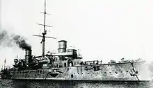 In 1924 two of her 3 in/40 guns were removed, as were all of her QF 3-pounder Hotchkiss guns, and a single 8 cm/40 3rd Year Type anti-aircraft gun was added.[6] By August 1933, all ten of her casemated 6-inch guns had been removed in addition to four more 3 in/40 guns.[7]