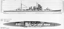 Takao (高雄) was the lead vessel in the Takao-class heavy cruisers, active in World War II with the Imperial Japanese Navy. These were the largest and most modern cruisers in the Japanese fleet, and were intended to form the backbone of a multipurpose long-range strike force. Her sister ships were Atago, Maya and Chōkai.[1]