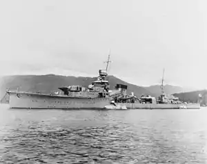 Yūbari (夕張) was an experimental light cruiser built between 1922 and 1923 for the Imperial Japanese Navy (IJN). Although a test bed for various new designs and technologies, she was commissioned as a front-line warship and participated in numerous combat operations during World War II before she was sunk by the U.S. Navy.[1] Designs pioneered on Yūbari had a major impact on future Japanese warship designs.