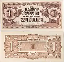 Japanese invasion money, officially known as Southern Development Bank Notes (Japanese: 大東亜戦争軍票 Dai Tō-A Sensō gunpyō, "Greater East Asia War military scrip"), was currency issued by the Japanese Military Authority, as a replacement for local currency after the conquest of colonies and other states in World War II. In February 1942 in Japan, laws were passed establishing the Wartime Finance Bank and the Southern Development Bank. Both institutions issued bonds to raise funds. The former loaned money primarily to military industries, but also to a wide range of other ventures, including hydroelectric generators, electric power companies, shipbuilding and petroleum. The latter provided financial services in areas occupied by the Japanese military, and Southern Development Bank notes were in fact used as de facto military scrip. In December 1942, the outstanding balance of Southern Development Bank notes stood at more than 470 million; in March 1945, more than 13 billion.[1]