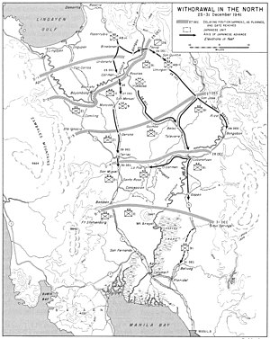 ![]() Map of Luzon Island showing Japanese landings and advances from 8 December 1941 to 8 January 1942 | |||||||