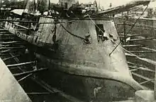 Union ships first arrived at Havana on 15 May and were reinforced over the course of the month, to include the monitors Monadnock and Canonicus.[15] Page decided to turn Stonewall over to the Spanish Captain General of Cuba for the sum of $16,000 to pay the crew's wages.[16] The vessel would then turned over to United States representatives in return for reimbursement of the same amount. The Americans did not pay until 2 November and Stonewall required some repairs before she could put to sea again. Escorted by the paddle steamers Rhode Island and Hornet, the ironclad departed Havana on 15 November and arrived at the Washington Navy Yard on 24 November. While sailing through Chesapeake Bay on the night of 22/23 November, Stonewall accidentally rammed and sank a coal schooner off Smith Island, Maryland; no lives were lost.[17] She was subsequently paid off and laid up at the Washington Navy Yard.[5]