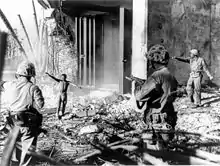 Allied combatants were reluctant to take Japanese prisoners at the start of the Pacific War. During the first two years following the US entry into the war, US combatants were generally unwilling to accept the surrender of Japanese soldiers due to a combination of racist attitudes and anger at Japan's war crimes committed against US and Allied nationals such as its widespread mistreatment or summary execution of Allied POWs.[20][28] Australian soldiers were also reluctant to take Japanese prisoners for similar reasons.[29] Incidents in which Japanese soldiers booby-trapped their dead and wounded or pretended to surrender in order to lure Allied combatants into ambushes were well known within the Allied militaries and also hardened attitudes against seeking the surrender of Japanese on the battlefield.[30] As a result, Allied troops believed that their Japanese opponents would not surrender and that any attempts to surrender were deceptive;[31] for instance, the Australian jungle warfare school advised soldiers to shoot any Japanese troops who had their hands closed while surrendering.[29] Furthermore, in many instances, Japanese soldiers who had surrendered were killed on the front line or while being taken to POW compounds.[32] The nature of jungle warfare also contributed to prisoners not being taken, as many battles were fought at close ranges where participants "often had no choice but to shoot first and ask questions later".[33]