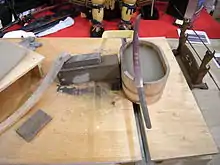 In 1993, Jerzy Piaskowski performed an analysis of a katana of the kobuse type by cutting the sword in half and taking a cross section. The analysis revealed a carbon content ranging from 0.6 to 0.8% carbon at the surface and 0.2% at the core.[33][34]