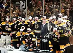 On 2 April 2013, Jágr was traded to the Boston Bruins in exchange for Lane MacDermid, Cody Payne and a conditional third-round pick in the 2013 NHL Entry Draft.[24] He made his Bruins debut on 4 April, scoring the lone goal in Boston's 1–0 win over the New Jersey Devils,[25] and with his second Bruins goal, the first scored in a 3–0 shutout over the Florida Panthers on 21 April 2013, Jágr tied the record for the most game-winning goals in an NHL career (118), previously set by Phil Esposito.[26]