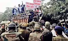 The Jat reservation agitation was a series of violent protests in February 2016 by Jat people of North India, especially those in the state of Haryana, which "paralysed the State for 10 days."[1] The protestors sought inclusion of their caste in the Other Backward Class (OBC) category, which would make them eligible for affirmative action benefits. Besides Haryana, the protests also spread to the neighbouring states, such as Uttar Pradesh,[2][3] Rajasthan,[4][5] and also the National Capital Region.[6][7]
