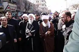 Tabrizi believes the attack of Fatimah's house holds a very high religious significance in the Shi'i creed.[10] He would specifically attend mourning gatherings dedicated to Fatimah, and be seen weeping. He led a large mourning procession in Qom, on the anniversary of her death–in accordance to the third narration– annually, that saw hundreds of thousands of people participating in it, and the attendance of other grand Ayatollahs like Hossein Wahid Khorasani. When the controversial marja' Sayyid Muhammad-Husayn Fadhlallah declared his opinion that the attack of the door was a myth, and deemed most stories as fiction,[11] Tabrizi along with Khorasani and Sayyid Muhammad-Sadiq Rohani deemed him a "deviant".[12]