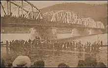 After the wooden bridge was destroyed by fire in 1919, it was replaced by an iron bridge,[1] and a steel girder bridge replaced the iron bridge in 1986.[3] State Route 664, the southern terminus of which is in Lock Haven, crosses the river over the steel bridge.