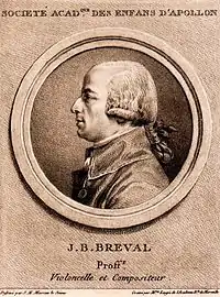Jean-Baptiste Sebastien Bréval (6 November 1753 – 18 March 1823) was a French cellist and composer. He wrote mostly pieces for his own instrument, and performed many world premières of his own pieces.