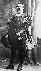 Delmas was born in Lyon and studied at the Paris Conservatoire winning first prizes for operatic singing.[1] He made his debut in 1886 as Saint-Bris in Les Huguenots at the Paris Opéra.[2] He remained with that company until 1927 and rarely sang outside France. He was known for the power and evenness of his voice with a sonorous quality in the bass range and an extended upper register, which allowed him to sing classic baritone roles such as Iago.[3] Outside France he appeared at the Mariinsky in St Petersburg, the San Carlo in Lisbon, and the Monte Carlo Opera House in Monaco.[1] His recordings for G&T, Pathé, Zonophone, Fonotipia, Odéon, and Opéra-Saphir are highly sought after by collectors.[1]