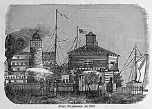 Following the decision, the U.S. District Court ordered Beaubien's payment returned, the military realized the fort unnecessary since Native Americans had left the area, and the General Land Office proceeded to ready to ready the property for subdivision and public auction as the "Fort Dearborn Addition to Chicago" (reserving only space for a lighthouse and quarters for the harbormaster). The subsequent sale of 233 lots raised $106,042.16 for the federal government, despite the decline of real estate prices after the Panic of 1837.[31] Nonetheless, Chicagoans objected when attorney James H. Collins, who had assisted the government's case against Beaubien's claim, bought five of the six lots on which Beaubien had erected his home seventeen-plus years earlier, and Beaubien could only purchase one of them, for $225. Either Beaubien then sold his lot when he couldn't buy the rest, or Collins actually evicted Beaubien from his Michigan Avenue home in 1839.[32][33] However, Collins was later less successful in his lawsuit against the Illinois Central Railway for encroaching on his lakefront property, and when the federal government formally abandoned the lighthouse and harbor area in 1854, Beaubien's friend, Congressman John Wentworth secured special legislation allowing Beaubien to patent those nine lots.[34][35]