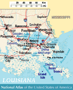 They established themselves on the small and sparsely populated island of Barataria, in Barataria Bay. The bay was located beyond a narrow passage between the barrier islands of Grand Terre and Grande Isle.[16] Barataria was far from the U.S. naval base, and ships could easily smuggle in goods without being noticed by customs officials. Workers would reload goods into smaller batches onto pirogues or barges for transport through the bayous to New Orleans.[17]