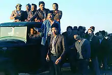 For the first seven years she experienced a normal childhood. She lived in Los Angeles, California until 1942 when President Roosevelt signed Executive Order 9066, causing her and her family to be evacuated. They were forced to leave their home and be taken to Manzanar. She and her family spent the next three years in the camp, attempting to live a "normal" life behind barbed wire, under the watch of armed guards in searchlight towers. Despite their efforts, obstacles managed to get in the way: her father's drinking habits and aggressive abuse, having no freedom, and very little space in the cubicles. However, things eventually improved, and they learned to adapt to their environment. Several years after leaving the camp in 1945, Jeanne went to San Jose State College where she studied sociology and journalism and participated in the marching band's flag team.[2][3] She met her husband James D. Houston there, and they married in 1957. Jeanne later decided to tell her story about the time she spent in Manzanar in Farewell to Manzanar, co-authored by her husband, in 1972. Ten years after their marriage, in 1967, Jeanne gave birth to a girl. Six years later she gave birth to twins.
