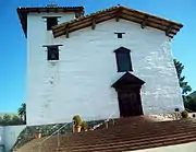 Smith and his party of 15 other men left the Bear River on August 7, 1826, and after retrieving the cache he had left earlier headed south through present-day Utah and Nevada to the Colorado River, finding increasingly harsh conditions and difficult travel.[57] Finding shelter in a friendly Mojave village near present-day Needles, California, the men and horses recuperated and Smith hired two runaways from the Spanish missions in California to guide them west.[58] After leaving the river and heading into the Mojave Desert, the guides led them through the desert via the Mohave Trail that would become the western portion of the Old Spanish Trail.[59] Upon reaching the San Bernardino Valley of California, Smith and Abraham LaPlant (who spoke some Spanish) borrowed horses from a rancher and rode to the San Gabriel Mission on November 27, 1826, to present themselves to its director, Father José Bernardo Sánchez, who received them warmly.[60][lower-alpha 11]