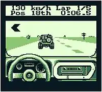 There are several options in the game including: difficulty level, whether to race in MPH or KM/H, steering ability, whether or not to have a track map, chevrons, and position flashing. The object is to race laps around a muddy race track while trying to get first place. There are twenty tracks to race in; each with a timer that forces the player to race fast.[4] There is an option to either do a single race or a multi-race tournament against a computer opponent or through a human playing while using the Game Boy link cable and another copy of the video game.[1][4] Items in the background like electric lines and rocks help provide a road-like feeling to the races.
