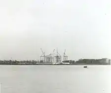 The completion of the Tidal Basin Inlet Bridge in 1908 helped to facilitate the recreational usage of East and West Potomac Parks. In 1918, large liquid-chlorine dispensers were installed under the bridge to treat the water and make the Tidal Basin (also known as Twining Lake) suitable for swimming. The Tidal Basin Beach, on the site of the future Memorial, opened in May 1918 and operated as a "Whites Only" facility until 1925, when it was permanently closed to avoid the question of racial integration.[6]