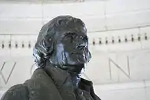 The interior of the memorial has a 19 feet (5.8 m) tall, 10,000 lb (4,500 kg) bronze statue[11] of Jefferson by the sculptor Rudulph Evans.[11] The statue was added four years after the dedication. Most prominent are the words which are inscribed in a frieze below the dome: "I have sworn upon the altar of God eternal hostility against every form of tyranny over the mind of man."[12] This sentence is taken from a letter written by Jefferson on September 23, 1800,[13] to Dr. Benjamin Rush wherein he defends the constitutional refusal to recognize a state religion.