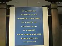 On the panel of the northwest interior wall is an excerpt from the 1777 Virginia Statute for Religious Freedom, except for the last sentence, which is taken from a letter of August 28, 1789, to James Madison:[14][16]