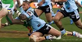 In January 2009, Smith was named the 2008 New Zealand Rugby League Player of the Year.[15] In his first year at the Dragons, the team won the 2009 Minor Premiership after finishing first in the regular season and again won the Minor Premiership in 2010. In August 2010, Smith signed a 3-year contract with the Cronulla-Sutherland Sharks starting in 2011.[16] Smith played at lock in the Dragons' team that won the 2010 NRL Grand Final, defeating the Sydney Roosters. This was Smith's second premiership after the Storm's 2007 title. After that win, he had played in more grand finals than any other New Zealander.[17] After winning the 2010 NRL Grand Final with the St. George Illawarra Dragons, Smith was a part of New Zealand's successful 2010 Four Nations campaign.