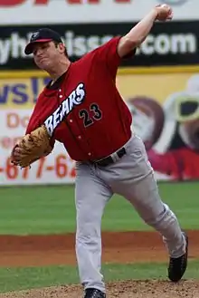After being demoted back to Buffalo, the Indians traded Robertson on August 3 to the Montreal Expos for Pierre-Luc Marceau.[4] He pitched in seven games for the Edmonton Trappers to end the season, finishing with a 1–3 record and a 5.73 ERA.[5] He was on the Expos' 40-man roster for September, but did not play a game for them, and in October he was removed from the roster. In November, the Cincinnati Reds signed him to a minor league contract with an invitation to spring training.[31] During spring training in 2005, Robertson competed with Aaron Harang, Brandon Claussen, Luke Hudson, and Josh Hancock for two spots in the Reds' rotation.[32] At the end of spring training, he was assigned to the Reds' minor league squad, the Louisville Bats. Robertson spent the season there, pitching in 28 games, 18 of them starts, and ended the year with a 5–11 record and a 5.46 ERA.[5] After the season ended, Robertson was released, becoming a free agent.