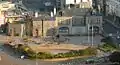 The façade of the former St Helier terminus can be seen here, with the Liberation Station bus terminus and construction site behind.