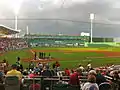 | Field size | Same as Fenway Park: Left Field: 310 feet Left-Center Field: 379 feet Center Field: 420 feet Right Field Bullpen: 380 feet Right Field Pole: 302 feet |