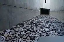 Israeli artist Menashe Kadishman created the installation Shalekhet – Fallen leaves, 10,000 faces punched out of steel and distributed on the ground of the Memory Void, the only "voided" space of the Libeskind Building that can be entered. Kadishman dedicated his artwork not only to Jews killed during the Shoah, but to all victims of violence and war. Visitors are invited to walk on the faces and listen to the sounds created by the metal sheets, as they clang and rattle against one another.