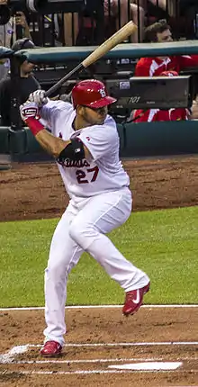 Jhonny Antonio Peralta (born May 28, 1982) is a Dominican former professional baseball shortstop and third baseman who played 15 seasons in Major League Baseball (MLB). The Cleveland Indians signed him as an amateur free agent in his native Dominican Republic in 1999, and he made his major league debut for the Indians on June 12, 2003. He subsequently played for the Detroit Tigers and St. Louis Cardinals. A solid hitter with power, Peralta has rated average defensively. He throws and bats right-handed, stands 6 feet 2 inches (1.88 m), and weighs 225 pounds (102 kg).