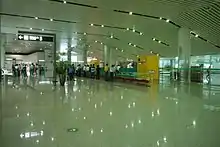The airport covers an area of 55,000 square metres and 12 jetways[8] with the passenger terminal divided into two, with the domestic terminal on one side and the international on the other. The whole terminal has an annual traffic capacity of 4.5 million passengers.[9] A second check-in terminal has also been created outside Shantou Railway Station, with bus connections to the airport.[10][11] In 2017, the airport was scheduled to undergo an expansion to extend the length of the runway from 2,800 to 3,200 metres in order to upgrade it to a code 4E runway which completed August 2019 along with construction of a transfer centre for the Chaoshan Railway Station.[12] The railway station serves two rail lines: the Xiashen line and the Meishan (Meizhou-Chaoshan) line, which was expected to be completed by the end of 2017.[13]