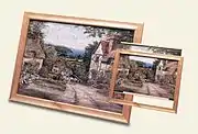 Jigsaw puzzle frames in which a completed puzzle can be displayed have never been very popular in either Europe or the US, but this is not the case in Japan where the customary use of jigsaws is for wall decoration. From the time that jigsaws first became available in Japan, in the 1970s,[6] jigsaw frames have been available to fit the jigsaw sizes of all the leading manufacturers.