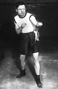 Jimmy Britt (October 5, 1879, in San Francisco, California – January 21, 1940) was a boxer from 1902 to 1909. He fought Joe Gans twice for the World lightweight title but lost both bouts. In a career spanning 23 bouts, Britt met 6 different Hall of Famers for a combined total of 10 fights; going 4-4-2. After retiring from boxing in 1909, Britt toured the United States as a vaudeville performer, then later worked as a WPA superintendent. He died of a heart attack in his San Francisco home on January 21, 1940 and was interred at Holy Cross Cemetery (Colma, California).[1] Britt was elected to the Ring Magazine hall of fame in 1976.