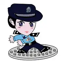 Jingjing and Chacha (警警 and 察察, a pun on the Chinese word for police, Chinese: 警察; pinyin: jǐngchá) are the cartoon mascots of the Internet Surveillance Division of the Public Security Bureau in Shenzhen, People's Republic of China. Debuting on January 22, 2006, they are used to, amongst other things, inform Chinese Internet users what is and is not legal to consult or write on the Chinese Internet. According to the director of the Shenzhen Internet police, "[we published] the image of Internet Police in the form of a cartoon [...] to let all internet users know that the Internet is not a place beyond of law [and that] the Internet Police will maintain order in all online behavior."[1]
