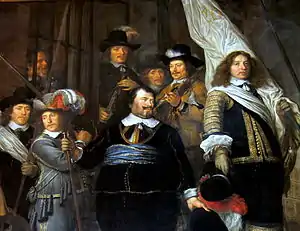 Johan Huydecoper is mentioned as the first person in Amsterdam, who bought a painting from Rembrandt.[4] Huydecoper and Rembrandt probably met each other at an early stage, as they both lived in the Sint Antoniesbreestraat. Huydecoper became a connoisseur of fine arts and was friendly with Jan Vos (poet), who praised his house and collection of paintings in several poems, one on a painting by Rubens. In 1639, Philip Vingboons designed his mansion on Singel; the house was destroyed in 1943, when two English planes collided in midair and one came down on the house. (One of the few spots in Amsterdam that were damaged during the Second World War).