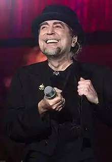 Joaquín Ramón Martínez Sabina (born 12 February 1949), known artistically simply as Joaquín Sabina, is a singer, songwriter, and poet from the Andalusia region of southern Spain. He is widely considered as the greatest and finest spanish-speaking songwriter.[1][2][3] His songs usually treat about love, heartbreaks and society with a large usage of literary figures similarly to the baroque-literature style.