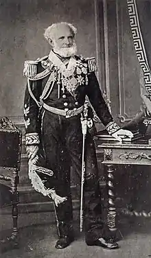 Joaquim Marques Lisboa, Marquis of Tamandaré (Rio Grande, December 13, 1807 – Rio de Janeiro, March 20, 1897)[1] was an admiral of the Imperial Navy of Brazil. He dedicated his life to the Brazilian Navy, including a life-long membership in Brazil's Military and Justice Council, then Supreme Military Court, from its inception until 1891, when the Republican Government granted him leave. A national military hero, he stands as the patron of Brazil's Navy, one of whose mottoes goes: "We belong to the undefeated Armada of Tamandaré". His birthday, December 13, was chosen by one of Brazil's foremost navy's minister in the early twentieth century, Admiral Alexandrino de Alencar, as the country's national Sailor's Day, on 4 September, 1925. As a young leftenant, Tamandaré took part in Brazil's War of Independence, in the repression of the Confederation of the Equator, and in the Cisplatine War (the "Argentine-Brazilian War" of 1825-8, or else, according to Argentinean and Uruguayan historiography, the "Brazil War"). Furthermore, Tamandaré also saw action during the Regency turmoil, when the Empire faced constant and nearly ubiquitous instability, but managed to put down regional insurrections such as those Tamandaré participated in: the Cabanagem, in Pará (1835-8); the Sabinada, in Bahia but mostly its capital, Salvador (1837-9); in the Farroupilha Revolution (the 'Ragamuffin War', from 1835 to 1845 — in truth, hardly a revolution in the historical sense); the Balaiada, in Maranhão, in which he took charge of all naval operations on his way up in his career as a naval officer (1838-1839); and the Praieira, in Pernambuco (1848-9). On the international-regional scene, he participated in the Platine War (1851-2) against Argentina's Juan Manuel de Rosas — arguably, the single major threat to Brazil at the time —, and in the Paraguayan War as the commander of all naval operations in the Triple Alliance, consisted of Brazil, Uruguay, and Argentina, by means of a treaty signed on 1 May, 1865. In the Rio de la Plata basin, he was ahead of naval operations in the battles of Passo da Pátria (when Allied forces entered Paraguayan territory), Curuzú (one of the Allies most important victories up to that point), and at the defeat at Curupayti, for which he blamed Argentina's Bartolomé Mitre, personal in charge of the Allied forces at the battle, after which both Tamandaré and his Chief of Staff Francisco Barroso (who commanded the decisive Allied victory at Riachuelo by personally ramming enemy vessels with his own ship, which was nonetheless not designed for this purpose), two of the greatest military heroes in Brazil at the time, stepped outside of the conflict and did not return to Paraguay, which would be dragged into yet another four years of conflict until Solano López was captured and executed and Paraguay surrendered. Tamandaré's memory still raises passions among the Navy's military nowadays, and he is studied by military and civilian scholars alike.[2]
