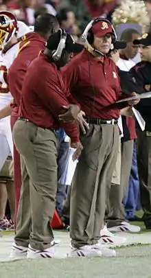 Because of his credibility, Gibbs was able to assemble one of the largest and most experienced coaching staffs in the NFL. Many coaches from his previous tenure with the team returned with Gibbs as well, including offensive line coach/assistant head coach Joe Bugel, offensive coordinator Don Breaux, quarterbacks coach Jack Burns, and tight ends coach Rennie Simmons. Gibbs was able to lure former Buffalo Bills head coach Gregg Williams to join the Redskins to run the defense and hired one of his former running backs, Earnest Byner, to serve as running backs coach. Overall, many of his assistant and position coaches were either former head coaches and/or held top assistant coaching positions with other NFL teams.