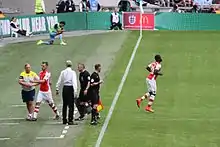 In September 2013, Campbell became the subject of controversy when video emerged of his off-the-ball dive against the United States' Matt Besler in a World Cup qualifying match. Besler received a yellow card and was suspended.[52] The footage generated discussion of the quality of CONCACAF refereeing, and whether such cheating should be eligible for post-match disciplinary action. Campbell's dive was described as "pathetic", "cynical" and "disgraceful".[53][54] On 13 September, the Costa Rican media reported that FIFA were investigating Campbell over the incident, although nothing came of the investigation.[55] On 4 October, FIFA officially reprimanded Campbell for unsporting behaviour.[56]