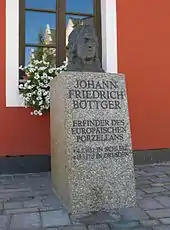Johann Friedrich Böttger (also Böttcher or Böttiger; 4 February 1682 – 13 March 1719) was a German alchemist. Böttger was born in Schleiz and died in Dresden. He is normally credited with being the first European to discover the secret of the creation of hard-paste porcelain in 1708,[1] but it has also been claimed that English manufacturers[2] or Ehrenfried Walther von Tschirnhaus[3][4] produced porcelain first. Certainly, the Meissen factory, established 1710, was the first to produce porcelain in Europe in large quantities and since the recipe was kept a trade secret by Böttger for his company, experiments continued elsewhere throughout Europe.