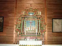 Christ on the cross between Mary and John altarpiece by Johannes Skraastad, Vallset church, 1686