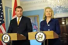 John Russell Baird PC (born May 26, 1969) is a Canadian retired politician. He served as Minister of Foreign Affairs from 2011 to 2015 in the cabinet of Prime Minister Stephen Harper. He had been a member of the federal cabinet, in various positions, since 2006. Previously he was a provincial cabinet minister in Ontario during the governments of Premiers Mike Harris and Ernie Eves. Baird resigned from Harper's cabinet on February 3, 2015,[1] and as a Member of Parliament on March 16, 2015.[2]