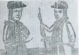 In 1783 Brooks played a prominent role in events concerning army pay arrears and pensions that became known as the Newburgh Conspiracy. He was one of three officers who delivered to the Continental Congress a letter drafted by discontented officers, and participated in hearings in which the army delegation outlined serious issues among the officers at Newburgh, New York. He then carried letters back to the army headquarters, and took part in actions orchestrated by Washington supporters to put down any ideas of mutiny.[13] He was accused, apparently falsely, of informing Washington of the conspiracy (Washington was tipped off by Alexander Hamilton to anticipate unrest.)[14] Historian Richard Kohn writes that details are lacking of Brooks' actions and motivations in the critical days of the conspiracy in February and March 1783, but describes his role in the affair as "crucial".[15]
