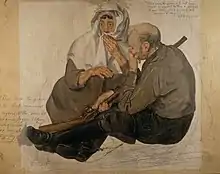 John Brown lived in a remote farm called Priesthill, in the upland parish of Muirkirk in Kyle, Ayrshire, where he cultivated a small piece of ground and acted as a carrier. Wodrow[4] describes him as 'of shining piety', and one who had 'great measures of solid digested knowledge, and had a singular talent of a most plain and affecting way of communicating his knowledge to others, he had employed his leisure in instructing youths.' [5] He had fought with the Covenanters at the battle of Bothwell Bridge (1679), and was on intimate terms with the leaders of the persecuted party. In 1682, Alexander Peden, one of the chief of these, married him to his second wife, Marion Weir. On this occasion Peden, according to Walker,[6] foretold the husband's early and violent end: 'Keep linen by you for his winding-sheet'.[7]