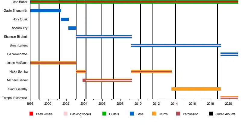 - Terepai Richmond – drums, percussion, backing vocals (2019–present)