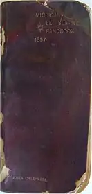 John Caldwell was elected in 1897 on the Republican ticket as a representative for the state of Michigan.[2] He represented Wexford County, Missaukee County and Clare County. Two years later he was reelected to the legislature[2][19][20] Caldwell received 3,173 votes to 1,888 votes for Joseph Yarnell (Democratic People's Union silver certificate).[upper-alpha 2][upper-alpha 3] Caldwell's personal Michigan legislative handbook shows the Representative members and what district they represented in 1897.[21][22]