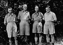 Major John Olliff, the 2IC, now took command. Olliff was also killed during the withdrawal from the 101 mile post on the evening of 19 January 1942.[85] 200 men from the 2/29th's A and B Company made it back under machine gun fire and through the swamp to the rear right to the 2/19th position. The men of HQ and C Company withdrew separately and did not make it back to the 2/19th position; they would join up and then split into smaller groups making their way to various destinations. The last group to leave was Captain Victor Brand, a small group of walking wounded and others including anti-tank gunners and drivers. Captain Brand's small group would re-join the 2/19th column before it reached Parit Sulong.[86][87][88][89]