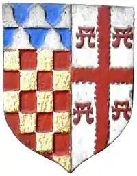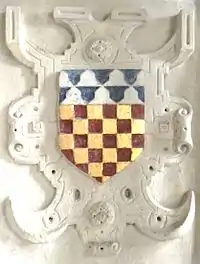 He married Gertrude Courtenay, a daughter of Sir William III Courtenay (1477–1535) "The Great",[4] of Powderham, Devon, MP for Devon in 1529, thrice Sheriff of Devon, in 1522, 1525-6, 1533-4, an Esquire of the Body to King Henry VIII, whom he accompanied to the Field of the Cloth of Gold.[5] He was 6th in descent from Hugh Courtenay, 2nd Earl of Devon (died 1377), and his own grandson William Courtenay (1527–1557) of Powderham became himself de jure 2nd Earl of Devon under the 1553 creation of that title. The arms of Courtenay quartered with Redvers appear amongst the many heraldic escutcheons shown on Chichester's monument in Pilton Church. He had by her seven sons and nine daughters,[6] who married into many of the leading gentry families of Devonshire, two of them marrying children of first cousins of Lady Jane Grey (1536/1537-1554), The Queen of Nine Days.[7] The marriages of his children are represented heraldically on a panel on his monument in Pilton Church.