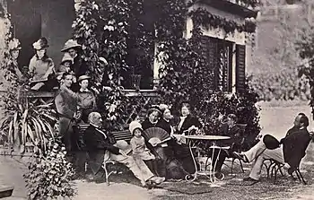 Acton’s health began to fail in 1901, and on 19 June 1902, in his 69th year, he died at the spa town of Tegernsee, Bavaria, Germany, whilst staying at his wife's family home there. His body was buried in a small communal graveyard by Lake Tegernsee, the grave lying today unmarked having lost its headstone in the latter half of the 20th century.[17] He was succeeded in the title by his son, Richard Lyon-Dalberg-Acton, 2nd Baron Acton. His 60,000-volume library, formed for use and not for display and composed largely of books full of his own annotations, was bought prior to his death by Andrew Carnegie in secret in order to secure the library for Acton's use during his lifetime, then upon Lord Acton's death, presented to John Morley, who forthwith gave it to the University of Cambridge.[6][18] According to Hugh Chisholm, editor of the 1911 Encyclopædia Britannica: