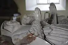 Gage died at his house, Firle Place, on 18 April 1556, and was buried on 25 April at West Firle Church next to his wife. Their alabaster altar tomb in the north chapel of that church is the work of Gerard Johnson the elder (1541–1611) and, along with monuments for some other members of their family, was erected in about 1595.[8][9]