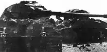 While his crew took shelter, Gorman ran to fetch a Sherman Firefly, a Sherman fitted with the powerful, British 17-pounder anti-tank gun. One of the Firefly's four crew had been decapitated and two others were in shock, but Gorman was able to remove the body and take command of the tank.[3] With the Firefly, he was able to complete the destruction of both the Tiger II and his disabled Sherman. He was awarded the Military Cross for his actions, while his driver, Lance-Corporal James Baron, was awarded the Military Medal.[4] Gorman was promoted to the rank of captain. However, this account is contested by the German tank's gunner, Gefreiter Thaysen, who said that his commander ordered to back up, hitting the Sherman with its rear. Thaysen's testimony also contradicts Gorman finishing off the Tiger II with a Sherman Firefly and capturing the German crew.[5]